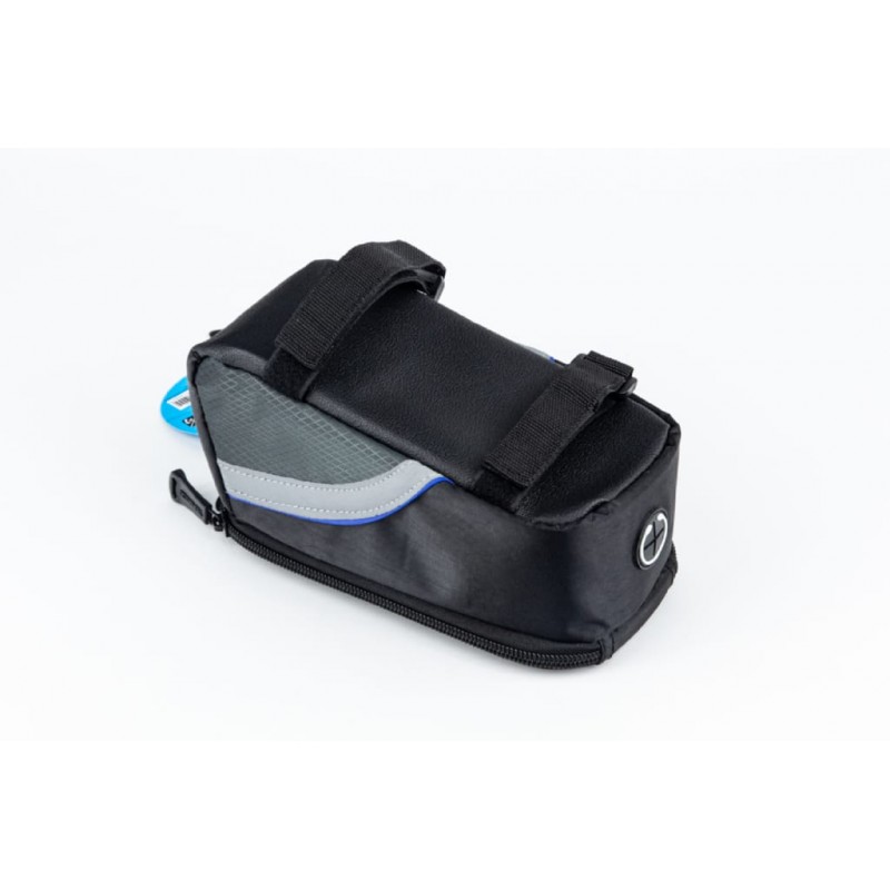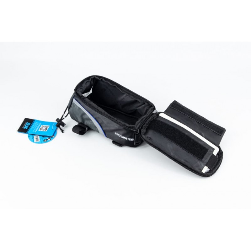 Сумка на раму с отделением для смартфона 175х90х90мм, светоотражающие полосы, крепл. на липучке, влагозащитная, чёрно-серая Rosw