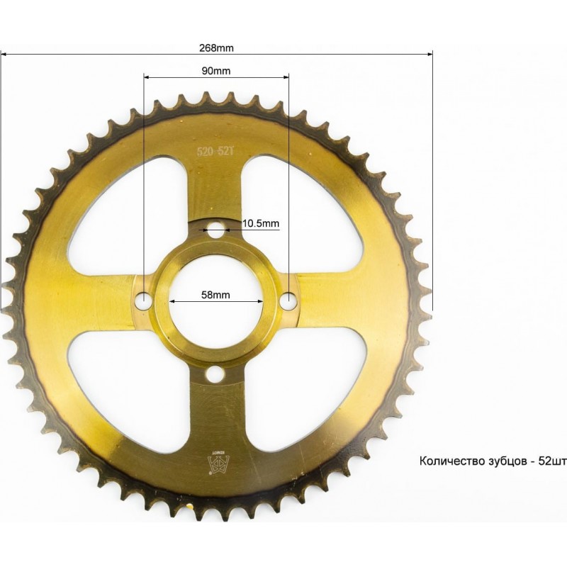 Звезда задняя 520-52T-d-58/ 4отв.*90мм "калёная", PULSAR P-180cc KDMOT