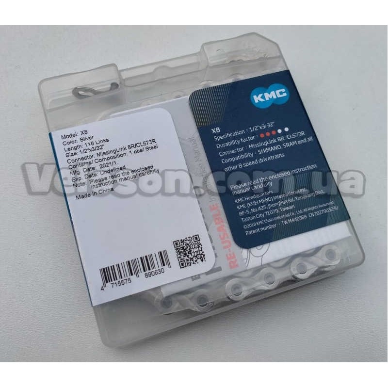 Цепь KMC x8 приводная 1/2х3/32х116L на 7-8 скоростей Silver