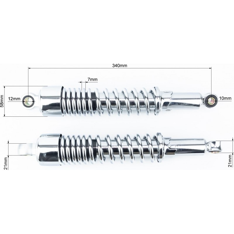 Амортизатор задний JH/CB/CG-340мм*d58мм (втулка 12мм / втулка 10мм) со стаканом регулир., хром к-кт 2шт R-GUANG
