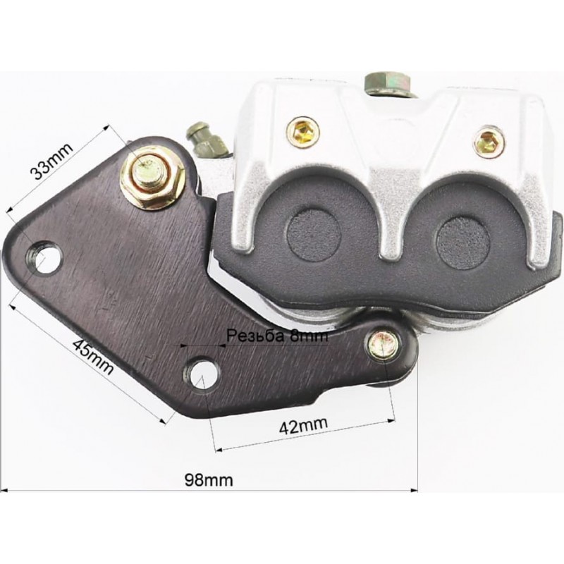 Тормозной суппорт задней системы (двухпоршневой)+колодки тип 3.2, серебристый Китай
