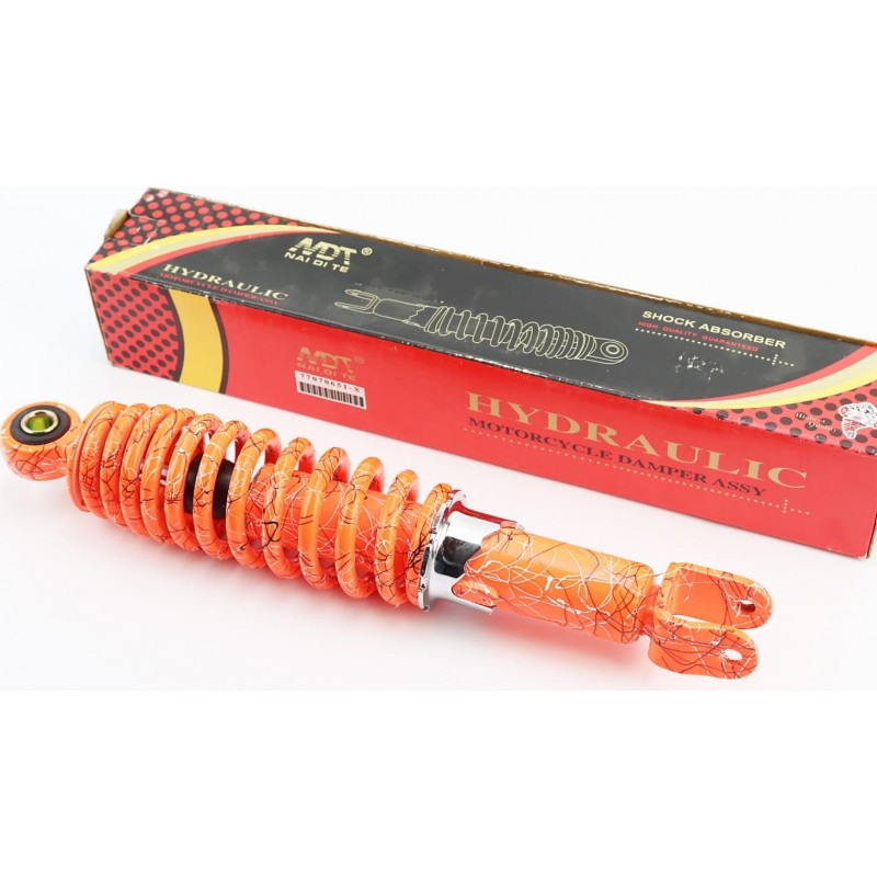 Амортизатор задний GY6/Honda-285мм*D-55мм (втулка 10мм / вилка 8мм) регулир., оранжевый "паутина" NAIDITE