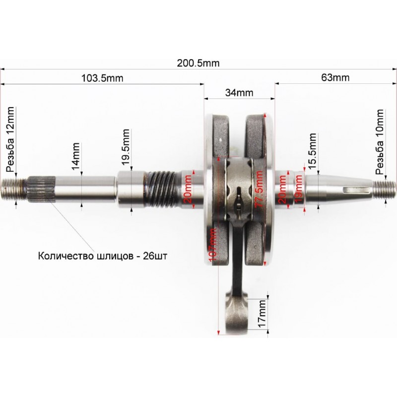 Коленвал Honda DIO AF35 (34мм), Тайвань Mototech
