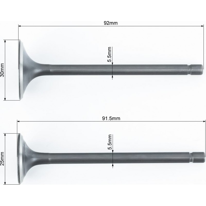Kinlon JL150-70C Клапана выпускной (H-91,5/ D-25), впускной (H-92/ D-30) к-кт 2шт 150cc Loncin