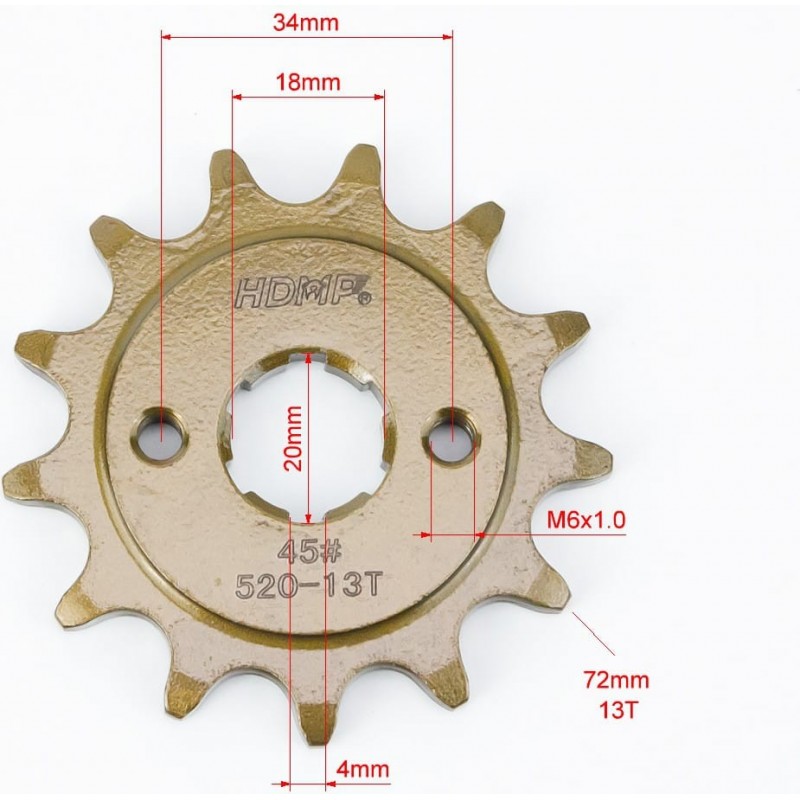 Звезда передняя CG/CB-520H-13T (шлиц 4мм) GOLD Loncin LX200GY-3 HDMP