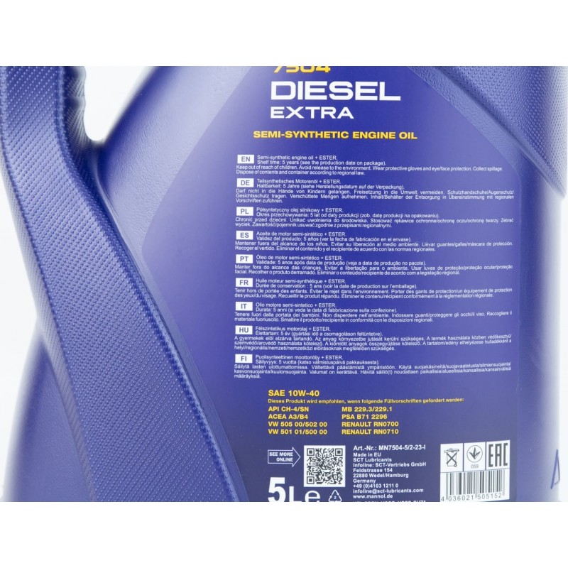 Масло 4T 10W-40 полусинтетическое дизельное "DIESEL EXTRA", 5L MANNOL