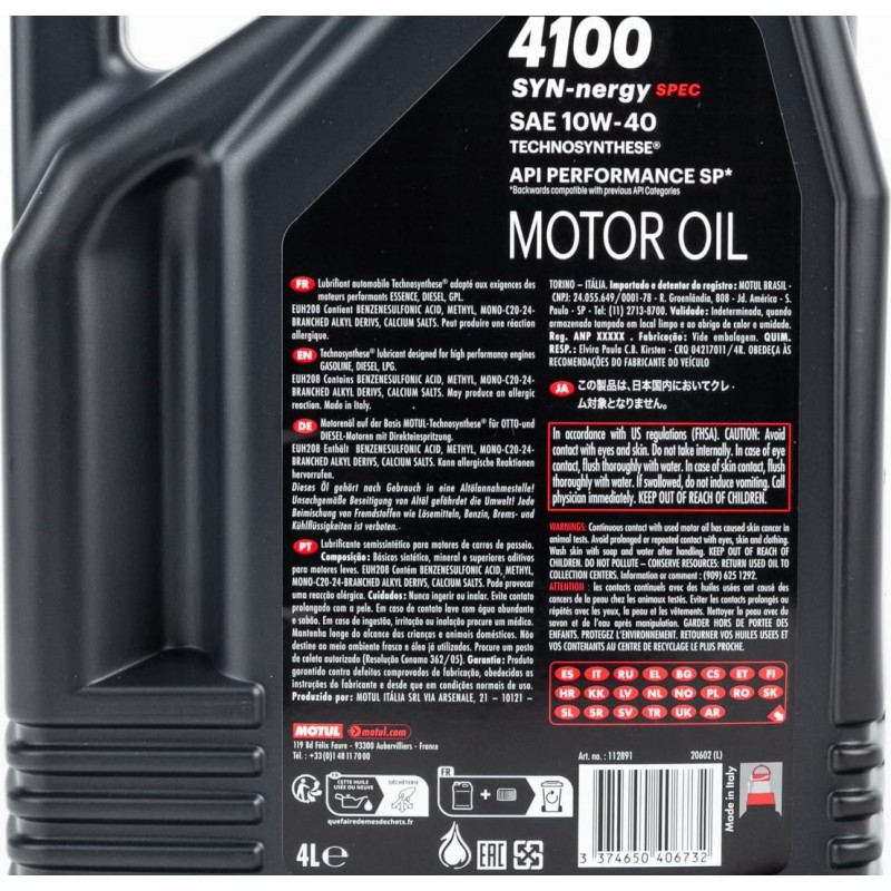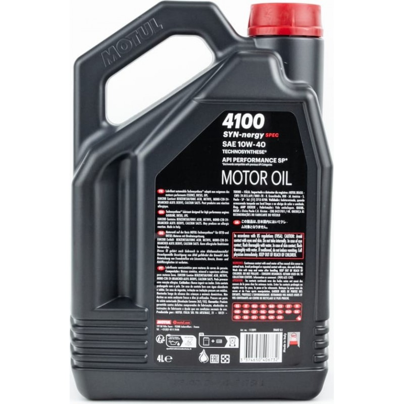Масло 4T 10W-40 полусинтетическое универсальное "4100 SYN-NERGY SPEC", 4L MOTUL