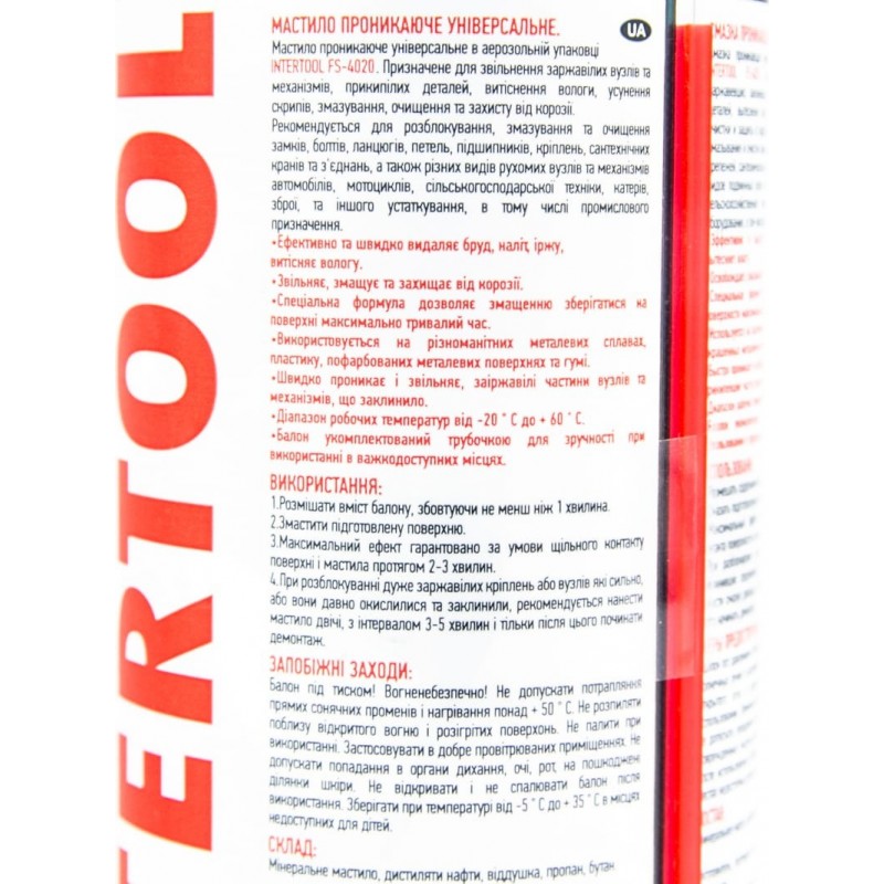 Смазка проникающая (аналог WD-40), аэрозоль 200ml (FS-4020) INTERTOOL