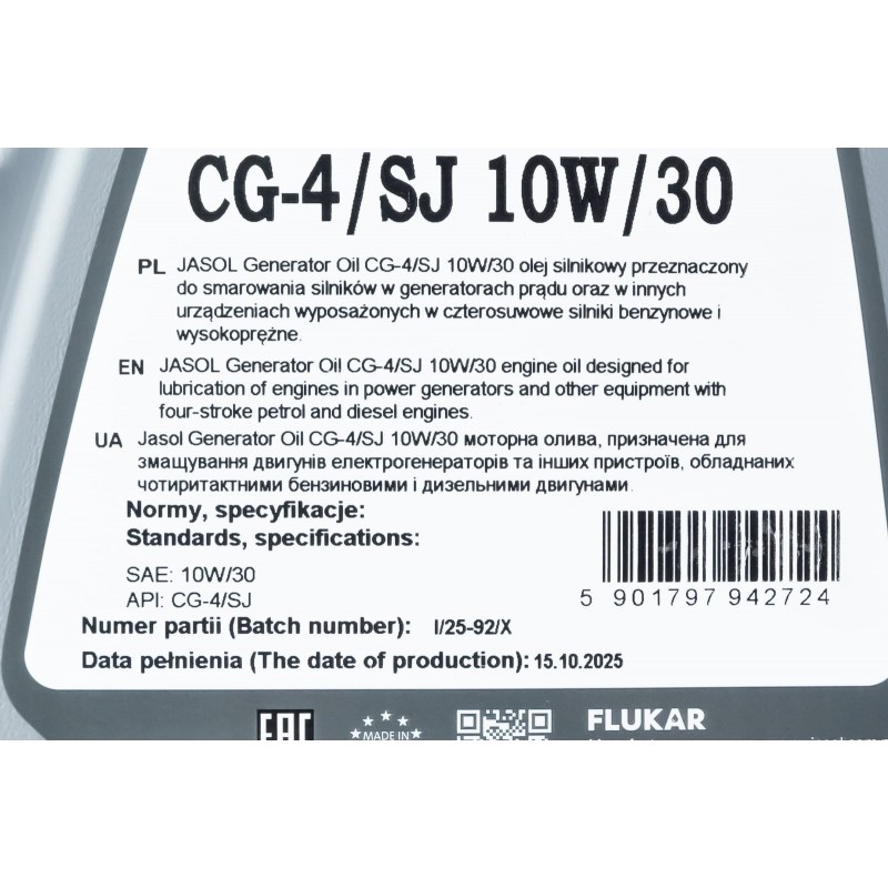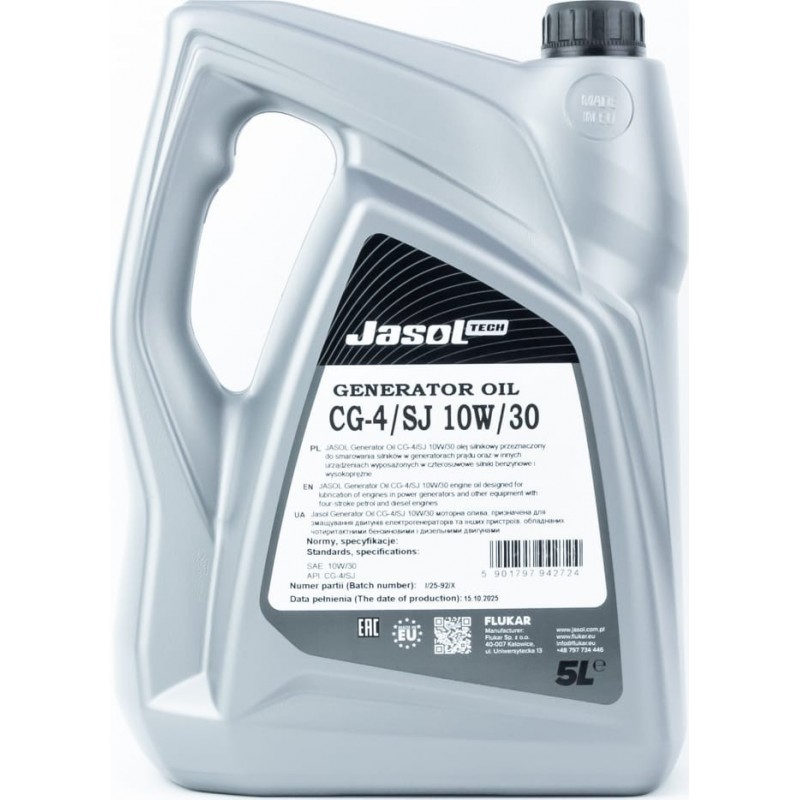 Масло 4T 10W-30 полусинтетическое для генераторов "GENERATOR OIL", 5L Jasol