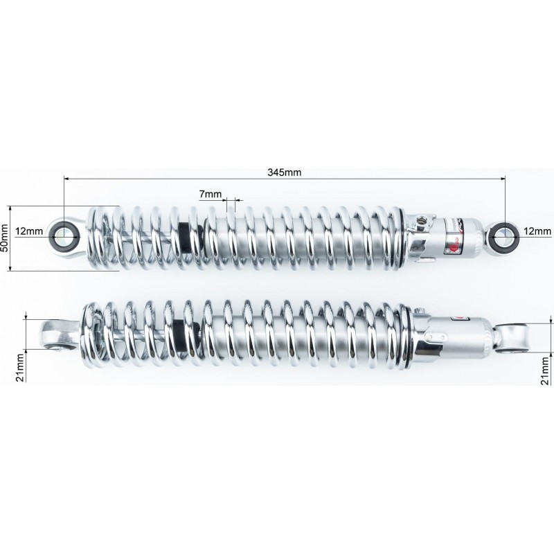 Амортизатор задний 345мм, D-50мм (втулка 12мм / втулка 12мм) регулир., хром к-кт 2шт GO!