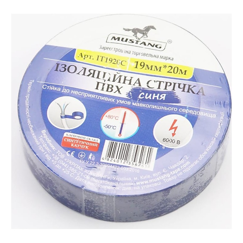 Лента изоляционная, синяя (20м*19мм*150мкм) MUSTANG Украина