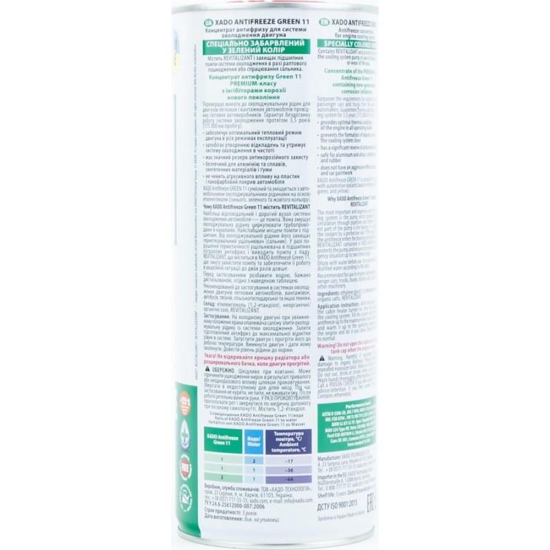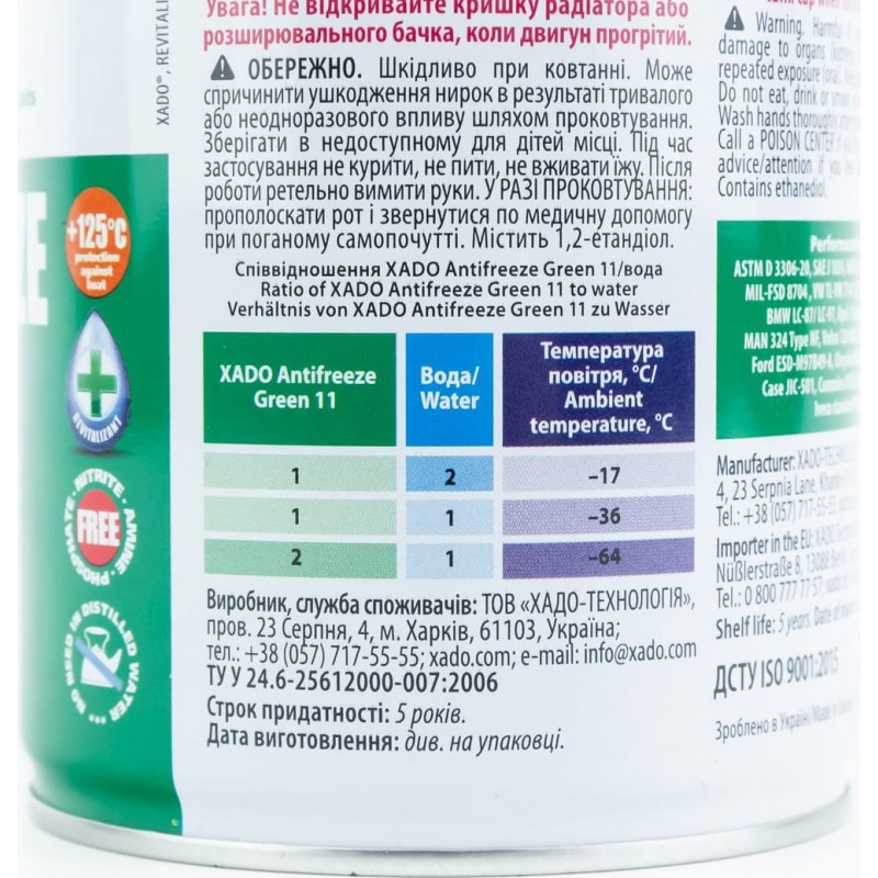 Жидкость охлаждающая концентрат -40°C "АНТИФРИЗ G11" зелёный, 1L metal (XA50004) XADO