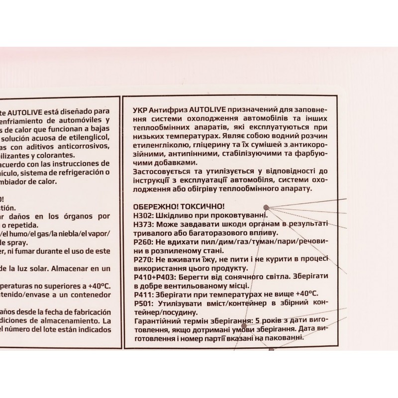 Жидкость охлаждающая -40°C "АНТИФРИЗ G12 + " красный, 5L AUTOLIVE