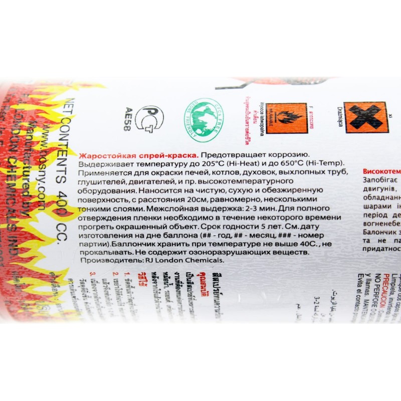 Краска красная, термостойкая №0006, аэрозоль 400ml BOSNY