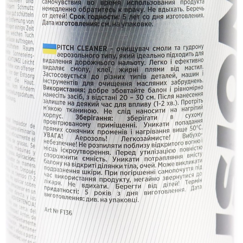 Очиститель кузова от битума и смолы "PITCH CLEANER", аэрозоль 450ml ProFUSION