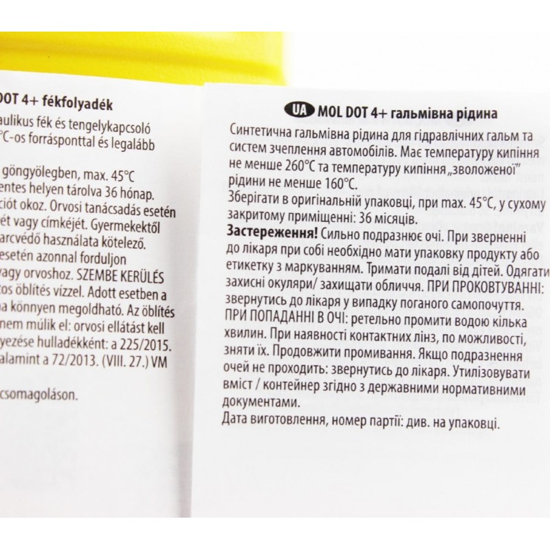 Тормозная жидкость синтетическая "DOT4 + ", 500ml MOL-Dynamic