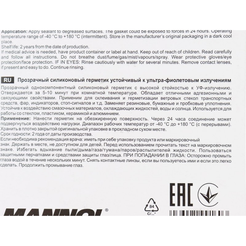 Герметик прокладочный силиконовый, прозрачный "GASKET MAKER CLEAR", 85g MANNOL