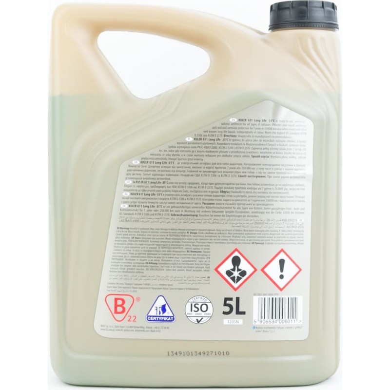 Жидкость охлаждающая -35°C "KULER LONG LIFE G11" голубая, 5L K2
