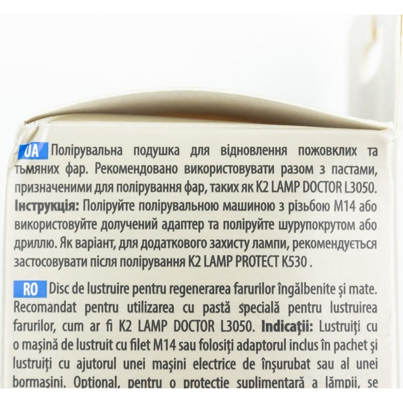 Губка для механической полировки фар "K2 LAMP DOCTOR PAD", ? 80mm K2