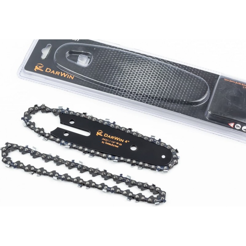 Шина 4"-1,1мм 1/4" 28зв L-13см (подходит на аккумуляторную мини-пилу) + цепи 1/4"-1,1мм-28зв. круг. зуб 2 шт DarWin