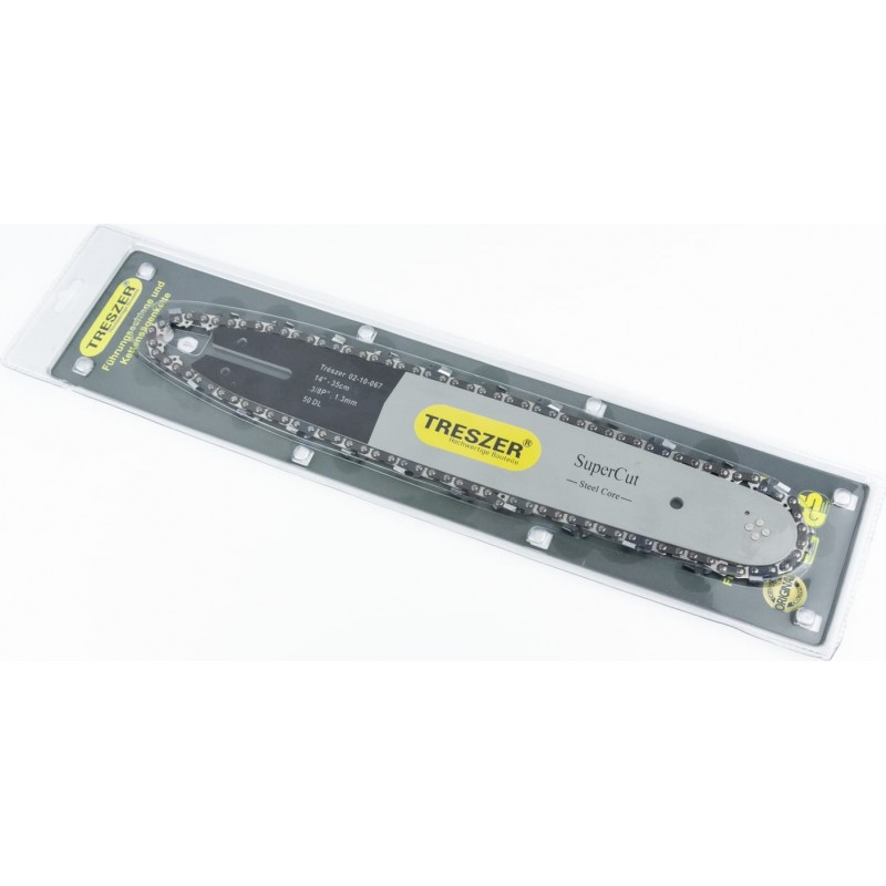 Шина 14"-1,3мм 3/8" 50зв L-39см + цепь 3/8"-1,3мм-50зв. квад. зуб, на блистере TRESZER