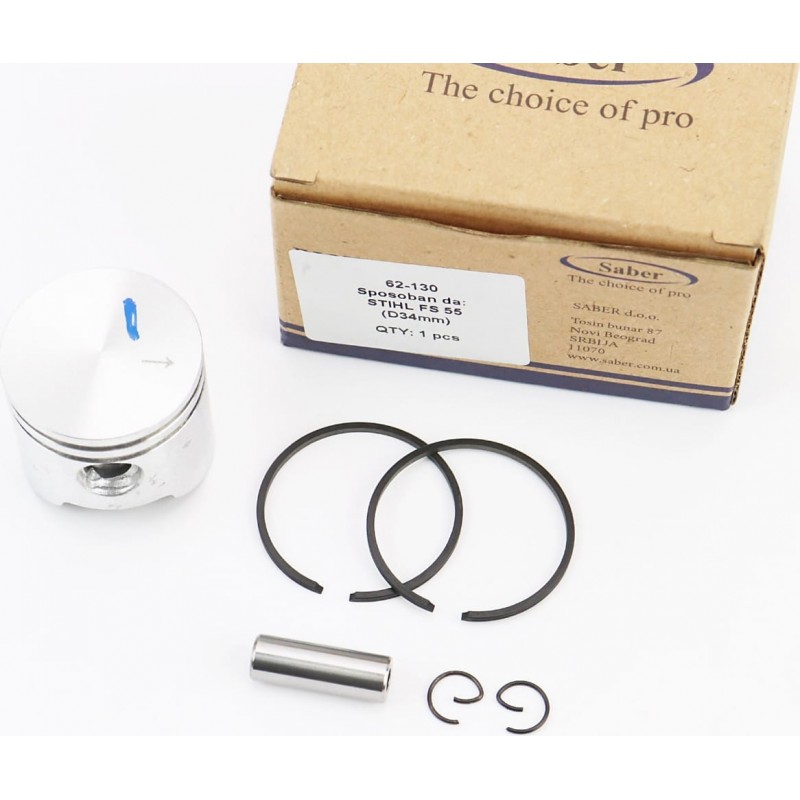 Поршень, к-кт 34мм (палец 8мм) подходит на Штиль FS-38/45/55, мм55, BT45 SABER