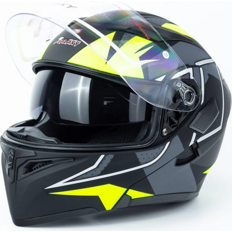 Шлем модуляр с откидным подбородком, выдвижные очки GLX-902 L (59-60см), чёрно-салатовый мат GALAXY
