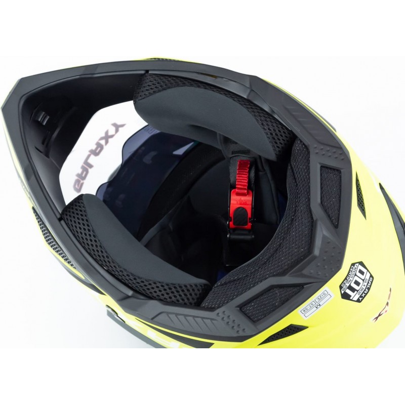 Шлем кроссовый с визором (стандарт DOT), выдвижные очки GLX-802 M (57-58см), чёрно-салатовый мат GALAXY