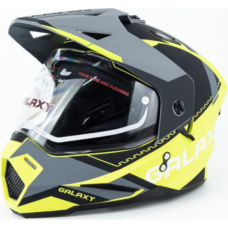 Шлем кроссовый с визором (стандарт DOT), выдвижные очки GLX-802 L (59-60см), чёрно-салатовый мат GALAXY