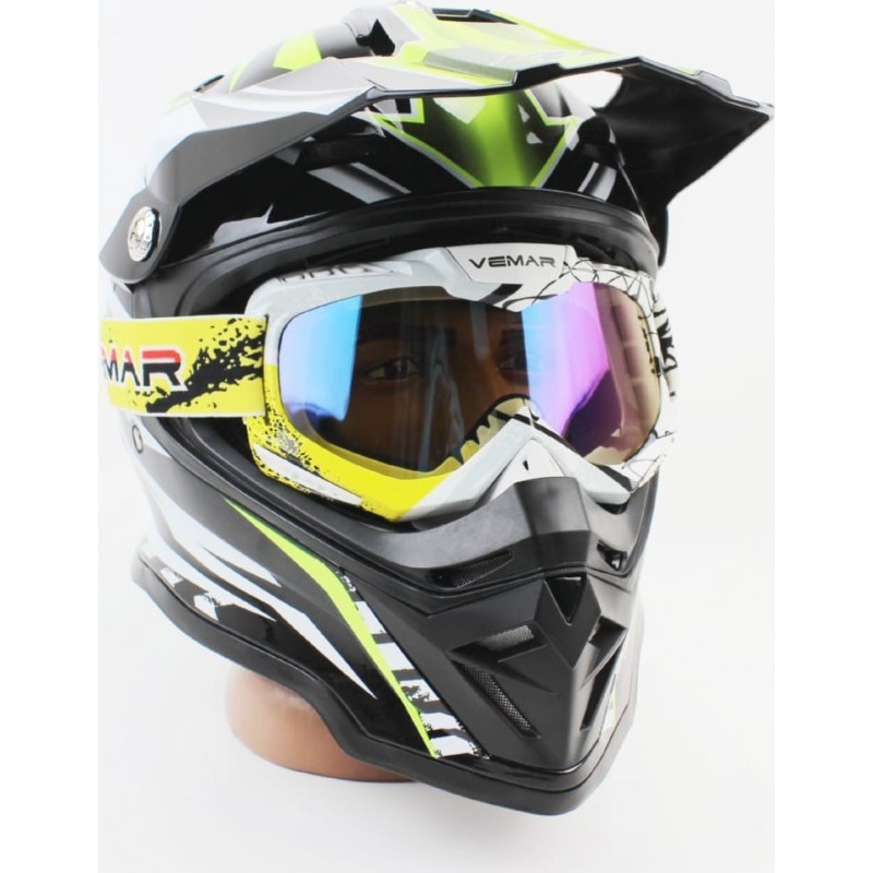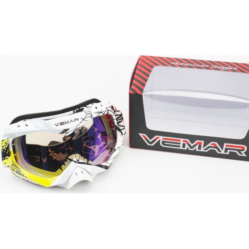 Очки кроссовые/эндуро/АТV, бело-чёрно-жёлтые (хамелеон стекло), VM-1016C VEMAR