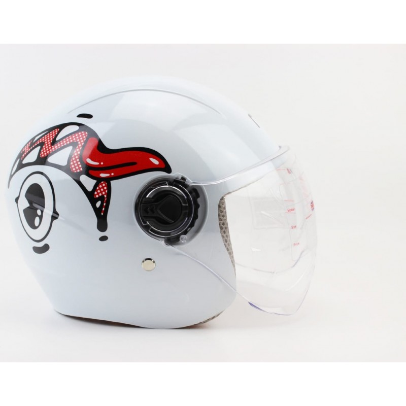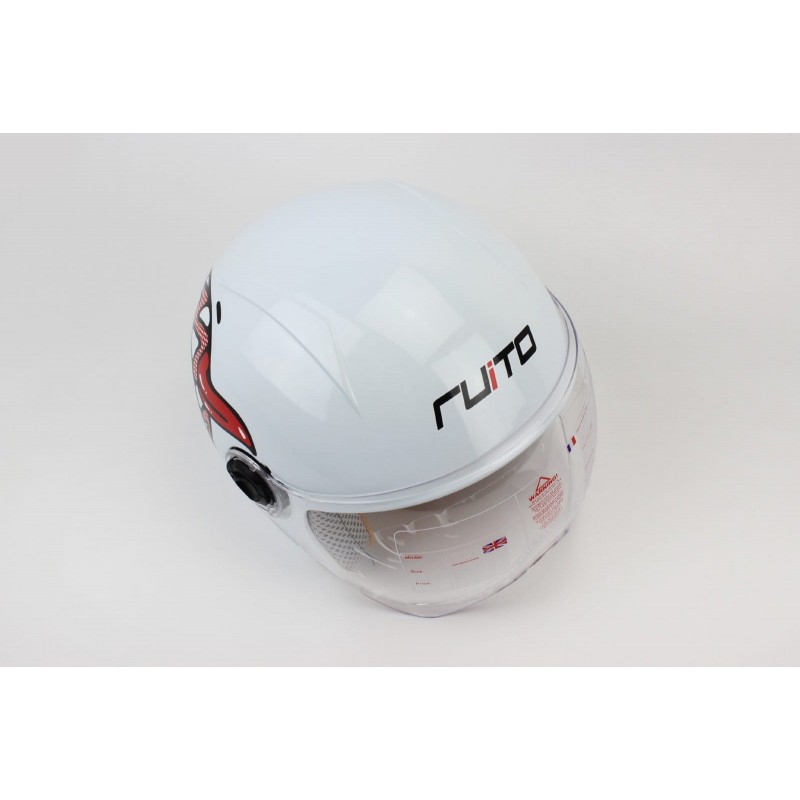 Шлем детский открытый Т68, белый с красно-чёрно-белым рисунком RUITO