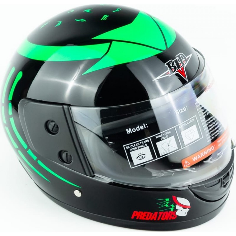 Шлем интеграл BLD-825A XS (53-54см), чёрно-зелёный "хищник" BLD