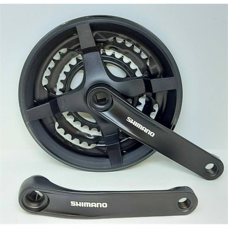шатуны Shimano TY301 BK, 48-38-28Т, с PL защитой, L-170 мм, 6/7/8 spd, алюминиевые со стальными звездами