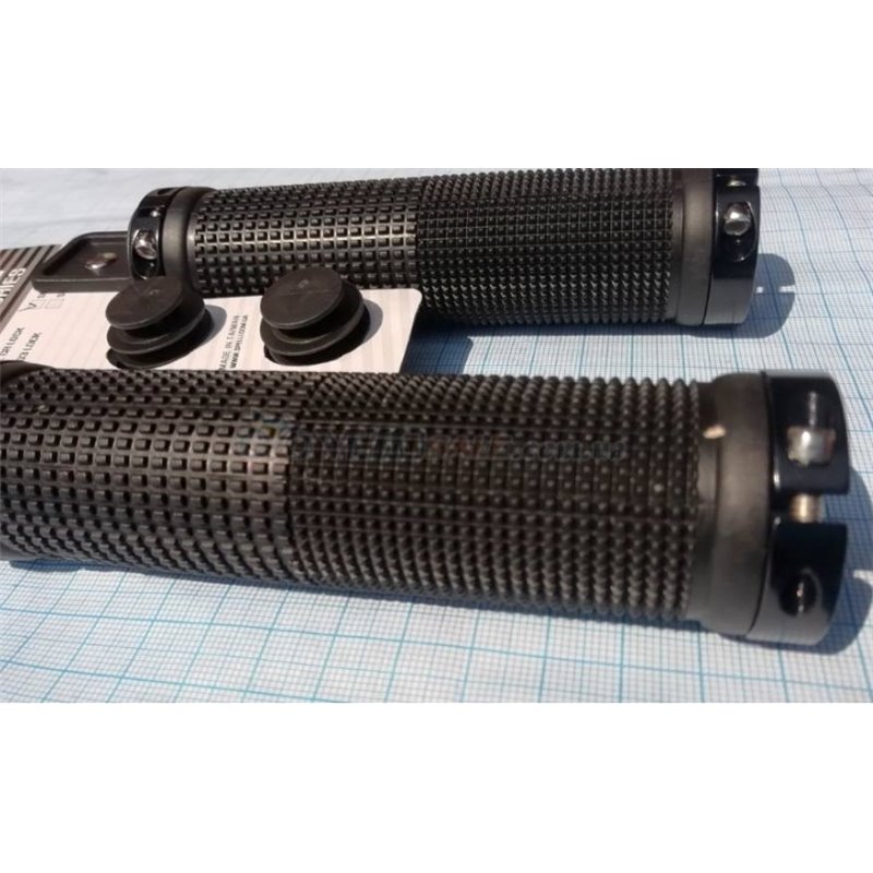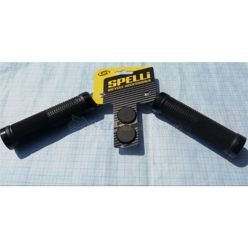 Грипсы SPELLI, ЧЕРНЫЕ с Черными замками,прямые, круглые, зажим с обеих сторон, длина 130 мм