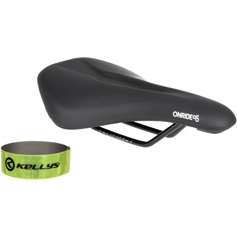 Седло ONRIDE Spot, рамки сталь, черное, 265 х 160 мм + светоотражающая полоска KLS 3M 40 см