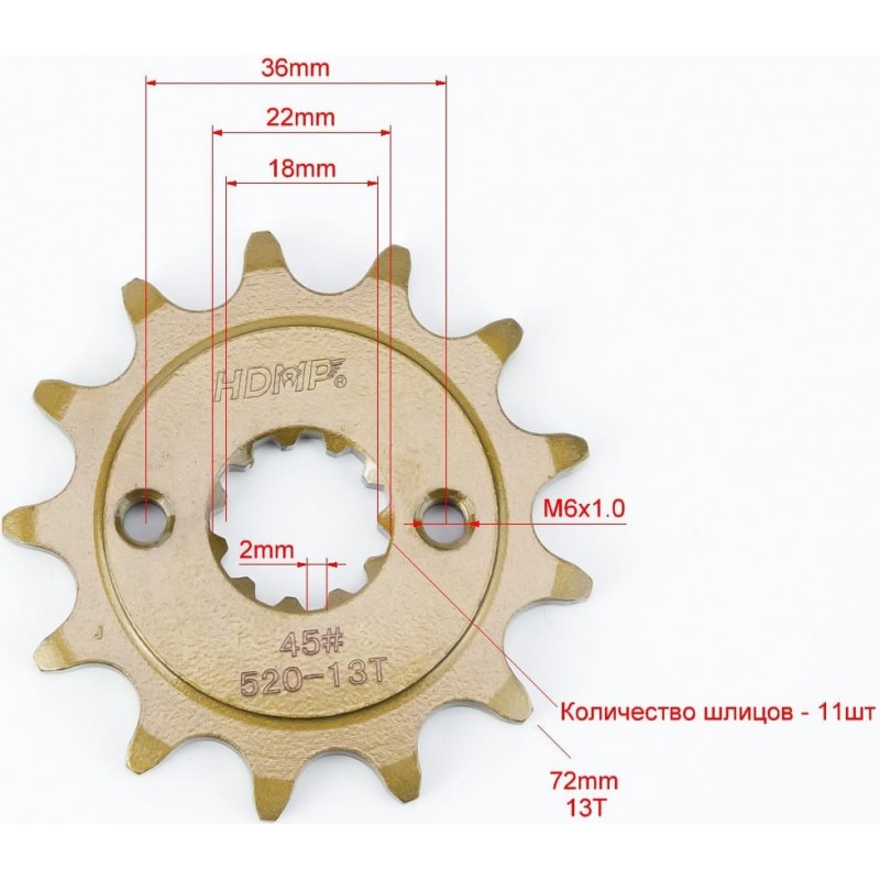 Звезда передняя CG/CB-520H-13T (11 шлицов) 171FMM Loncin FE250 HDMP