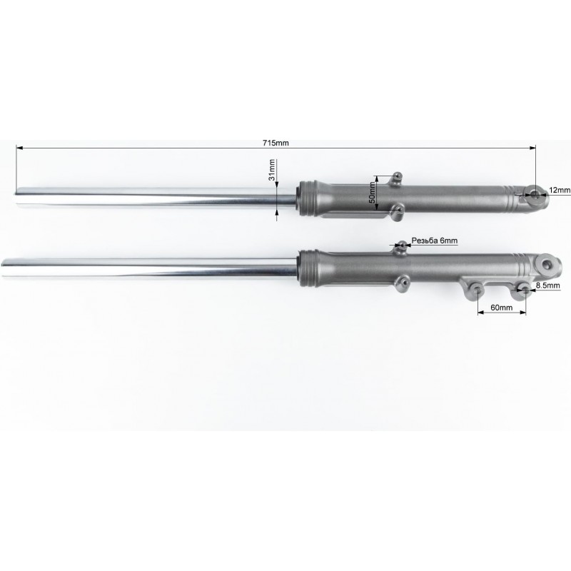 Вилка передняя (перья) лев., прав., к-кт 2шт, (диск.торм.) 715мм, тёмно-серые (без гофры) Китай
