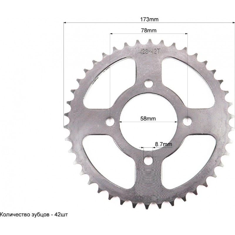 Звезда задняя JD125-428-42Т-d-58/ 4отв.*78мм, чёрная Китай