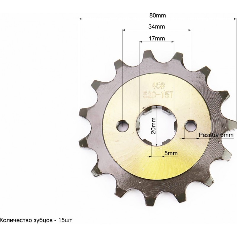 Звезда передняя CG/CB-520H-15T (шлиц 5мм) "калёная" Loncin LX250GY-3/Scrambler 250 MARATHON