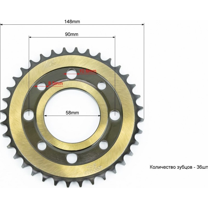 Звезда задняя WY125-428-36T-d-58/ 4отв.*90мм "калёная" (ZS125J спицы) MARATHON