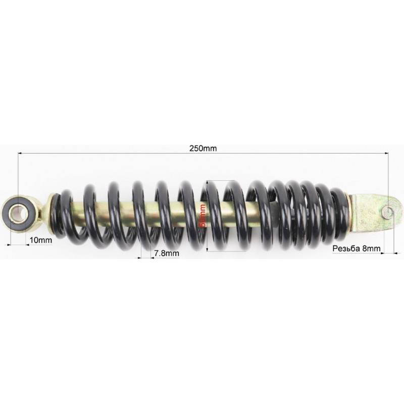 Амортизатор задний GY6/Yamaha-250мм*D-50мм (втулка 10мм / вилка 8мм), чёрный HAORUN