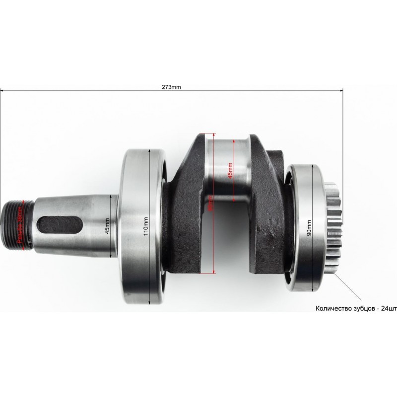 Коленвал R180NM+подшипники+шестерня, запрессованный, с канавкой под ст. кольцо KAMBERG
