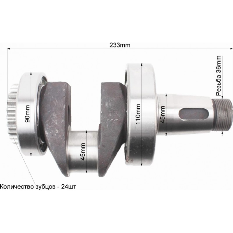 Коленвал R180NM+подшипники+шестерня, запрессованный Китай