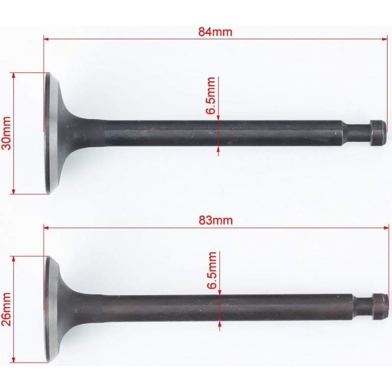 Клапана впускной (H-84/ D-30/ d-6,5), выпускной (H-83/ D-26/ d-6,5) к-кт 2шт 73F/177F+пружина-Viper