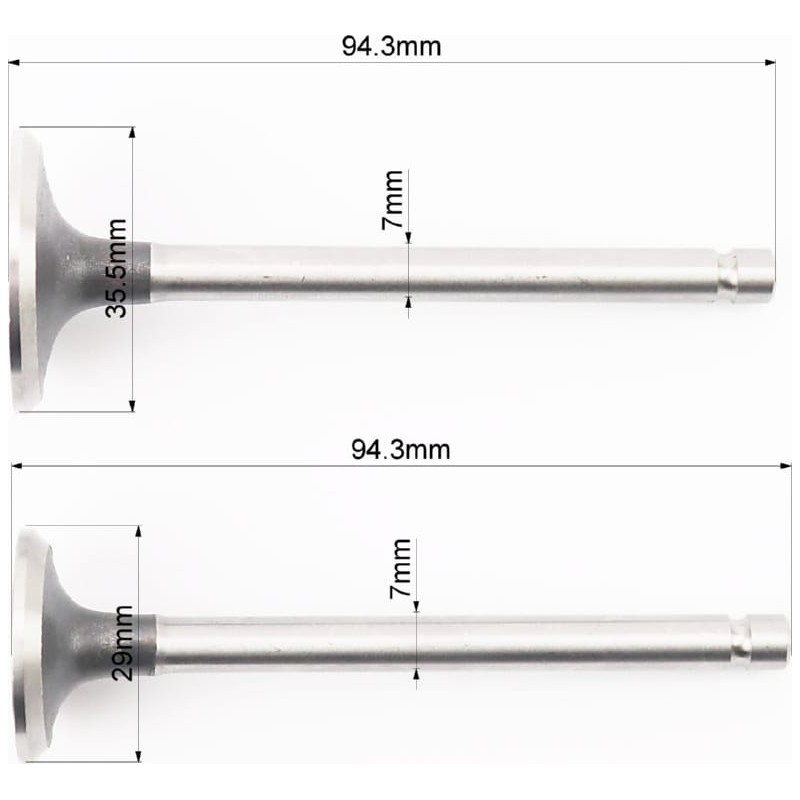 Клапана впускной (H-94,3/ D-35,5/ d-7), выпускной (H-94,3/ D-29/ d-7) к-кт 2шт 186F+пружина-2шт+шайба-2шт Viper