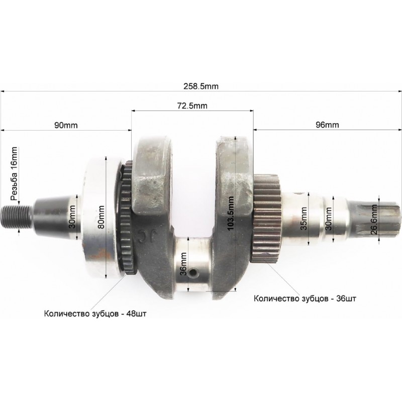 Коленвал 178F (Dшейки-36мм, H-103,5мм) под шлиц+шестерни+подшипник, запрессованный Китай