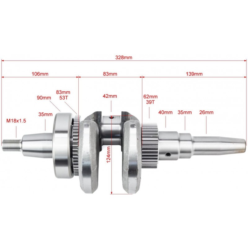 Коленвал 188F (Dшейки-42мм, H-124мм) под конус+шестерни+подшипник, запрессованный Китай
