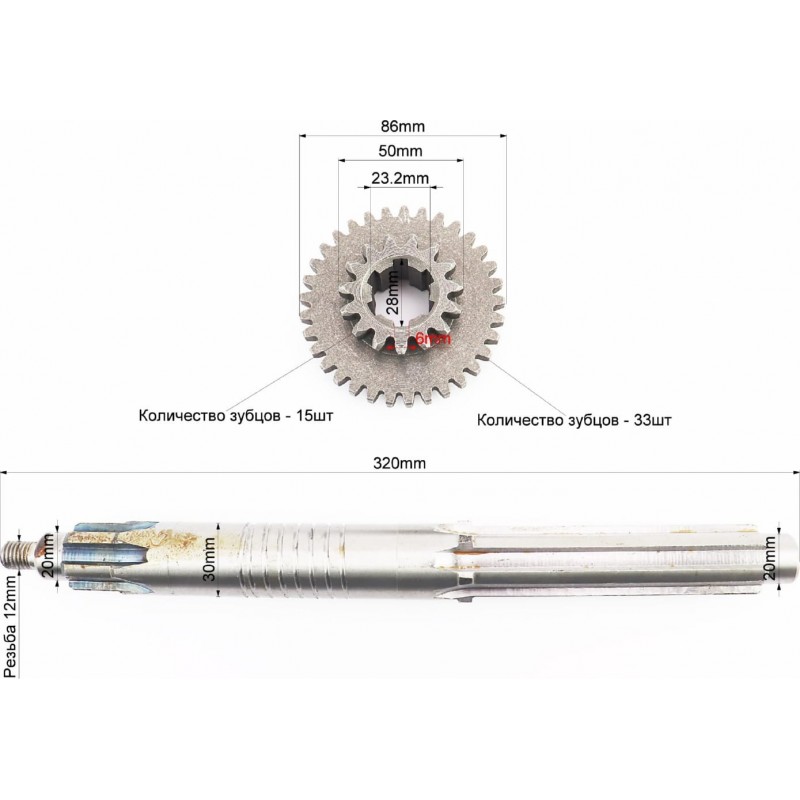 КПП-Вал первичный 320мм+шестерня Z-15x33 81-1 Viper