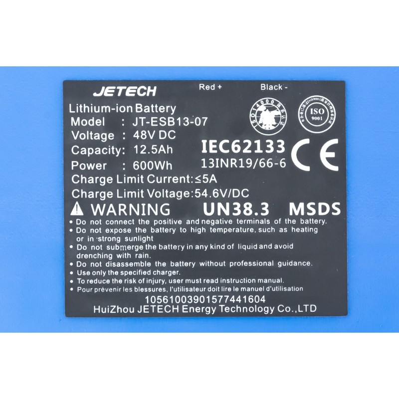 Аккумулятор Li-ion 48V 12.5Ah-600Wh (L270*W105 *H70mm), Т4 (электросамокат) JETECH
