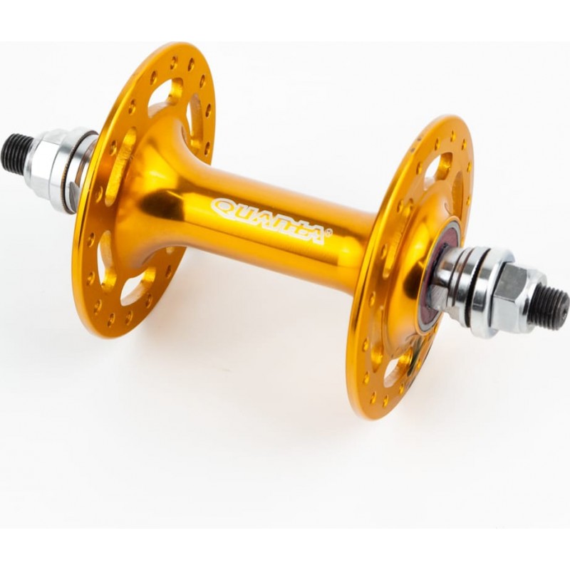 Втулка передняя FIX алюминиевая 14Gx36H, 2 пром-подшипники 6000 2RS, крепл. гайка, золотистая KT-DP6F QUANDO